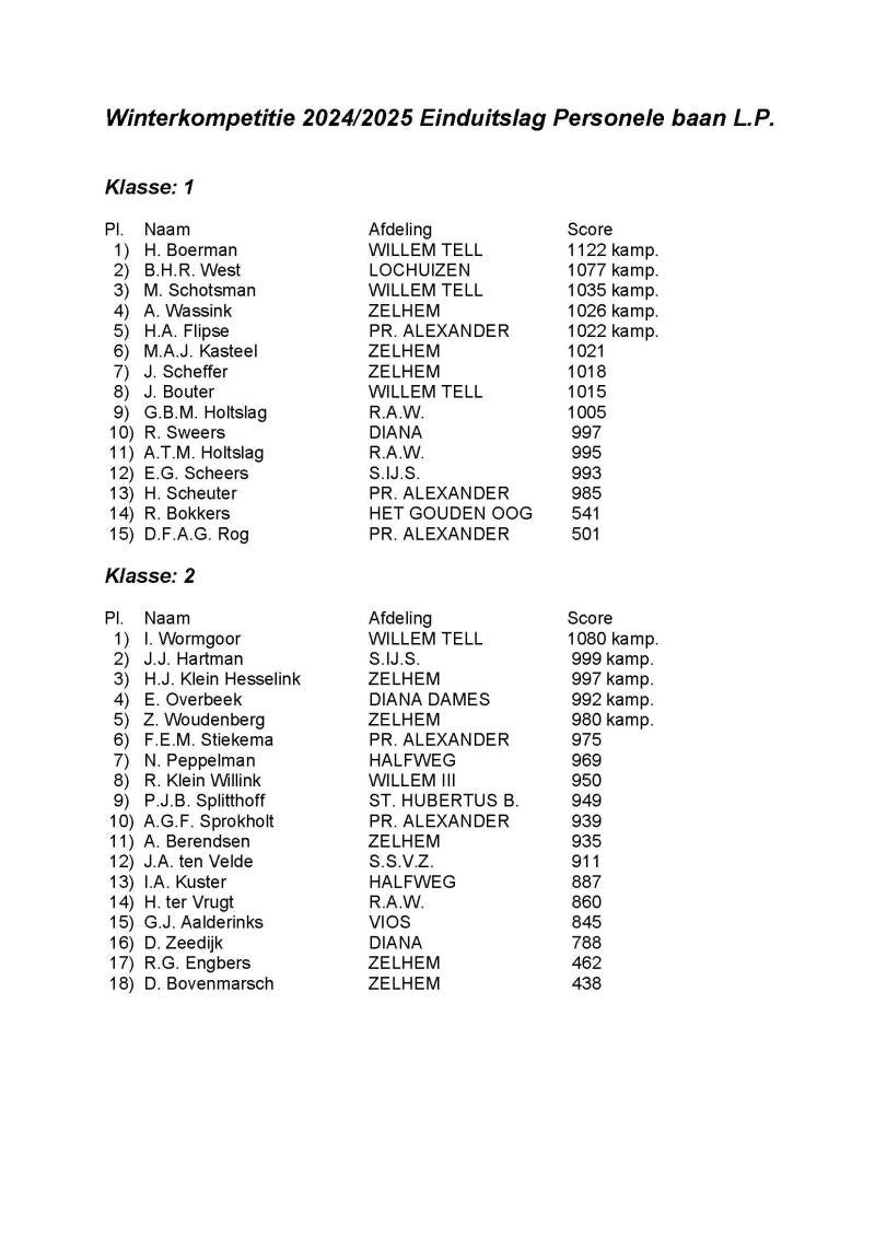 Uitslagen Wintercompetitie Oost Gelderland 2024-2025 Luchtgeweer
